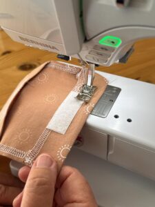 Klittenband zonder lijmlaag is geschikt om op een stuk stof te naaien. Dat luskant laat zich gemakkelijk opnaaien, de haakkant is wat lastiger omdat alle draadjes eraan blijven kleven.